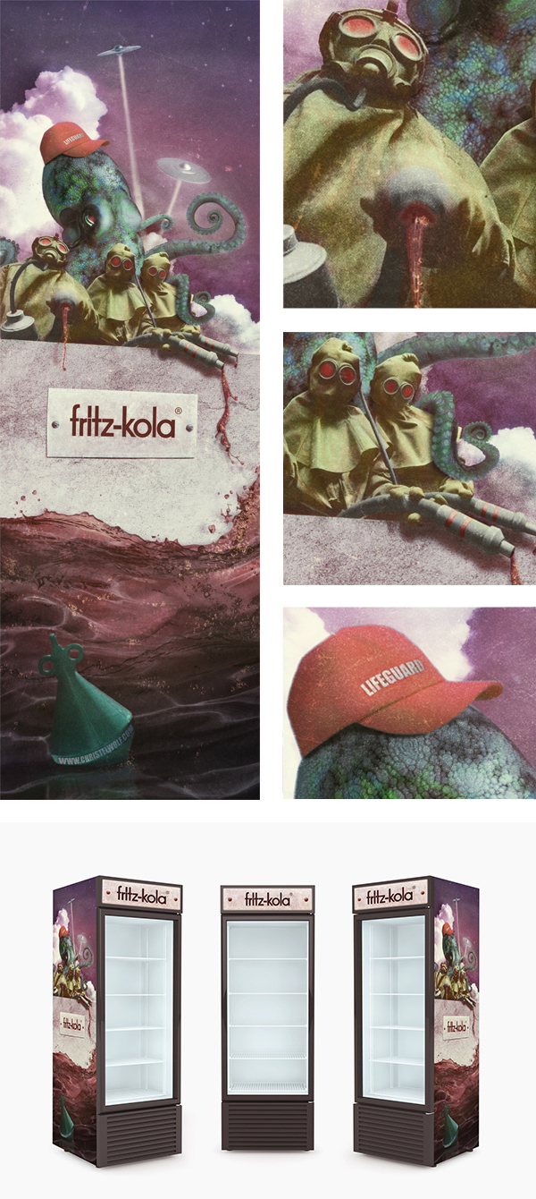 Christel Wolf, coca cola, cola, design, fritz kola, illustratie, illustration, octopus, ontwerp, refrigerator, retro, science fiction, ufo